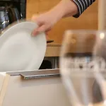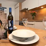 Hier gibt es ein privates Bad mit einer getrennten Toilette und einer Dusche. Im Apartment gibt es auch mediale Annehmlichkeiten wie einen Flachbildfernseher mit Satellitenkanälen, damit Gäste in Ruhe entspannen können.